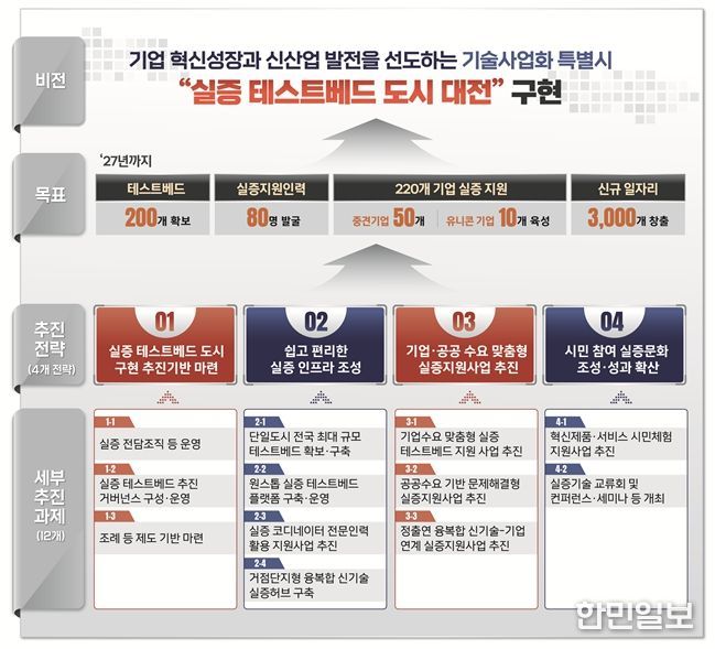 한민일보 서울포커스 윤민경 기자 | 대전시가 13일 기업의 혁신성장과 신산업 발전을 촉진하기 위한 ‘실증 테스트베드 도시 대전 구현계획’을 발표했다.