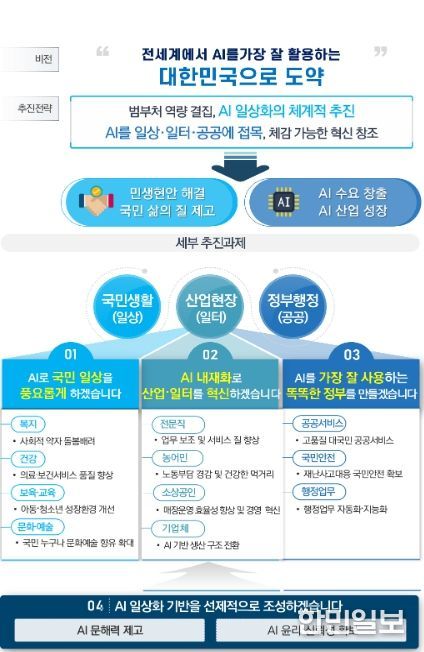 이종호 장관은 ▴인공지능 국제협력 확대, ▴전국민 인공지능 일상화 추진, ▴디지털 권리장전 수립, ▴인공지능 윤리・신뢰성 확보 등 디지털 모범국가를 향한 ‘대한민국 인공지능 도약방안’을 발표했으며, 세부 내용은 다음과 같다.