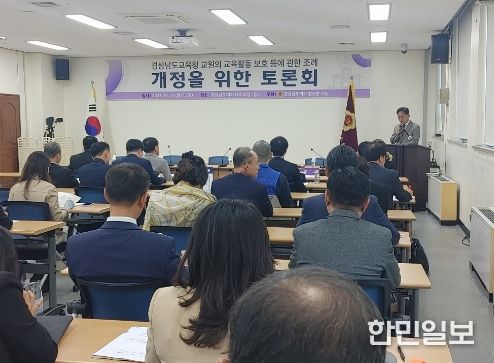 한민일보 서울포커스 임호근 기자 | 경상남도의회 교육위원회 정수만(거제1·국민의힘) 의원은 24일 도의회 대회의실에서'경상남도교육청 교원의 교육활동 보호 등에 관한 조례'전부 개정안을 발의를 논의하기 위한 토론회를 개최했다.