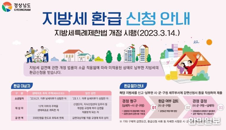 한민일보 서울포커스 임호근 기자 | 경상남도는 생애 최초로 주택을 구입하고 감면받지 않은 도민 318명을 찾아내 총 4억 원을 환급했다고 9일 밝혔다.