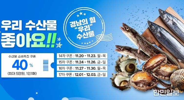 한민일보 서울포커스 임호근 기자 | 경상남도는 온라인 쇼핑몰을 통한 지역 수산식품의 소비촉진과 소비판로 확대를 위해 9월 11일부터 e경남몰을 시작으로 쿠팡, 컬리와 손잡고 순차적으로 ‘지역 우수 수산식품 상생기획전’을 운영했으며, 그 결과 전년동기 대비 수산업체의 매출액이 대폭 증가했다고 밝혔다.