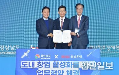 한민일보 서울포커스 임호근 기자 | 경남도와 BNK경남은행은 4일 오후 거제 소노캄 호텔에서 경남지역 창업생태계 조성을 위한 상호지원 업무협약식을 진행하고, 벤처투자 유치 기업설명회 ‘Connecting with US’를 처음 선보였다.