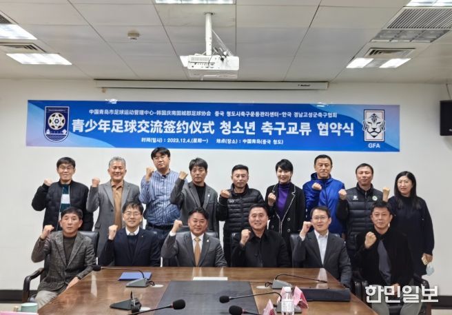 한민일보 서울포커스 임호근 기자 | 경상남도 산동사무소는 고성군 청소년 축구팀(고성U15)과 정기적인 교류를 희망하는 중국 청도시 축구클럽을 발굴하여, 4일 중국 청도에서 고성군축구협회와 청도시축구운동관리센터 간 축구교류 협약식을 개최했다.