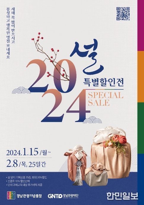 한민일보 서울포커스 임호근 기자 | 경상남도와 경남관광재단이 운영하는 경남관광기념품점은 올해 설을 맞이하여 오는 15일부터 다음 달 8일까지 특별 할인행사를 진행한다고 밝혔다.