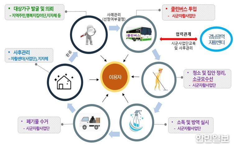 특히, 시범사업 2년차인 올해는 경남형 통합돌봄 기본모형으로 주거취약계층을 대상으로 찾아가는 집정리 ‘클린버스’ 사업을 9개 시군에서 공동 추진할 예정이며 4월부터 본격 운행될 수 있도록 준비하고 있다.
