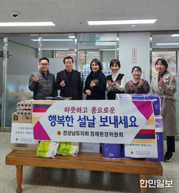 한민일보 서울포커스 임호근 기자 | 경남도의회 경제환경위원회(위원장 김일수)는 2월5일 설을 앞두고 따듯한 사랑의 손길이 필요한 이웃들을 위하여 김해시 소재 진우원(아동복지시설), 한마음학원(장애인복지시설)등 2개소를 방문해 생필품 등 위문품을 전달하며 관계자들을 격려하는 시간을 가졌다.