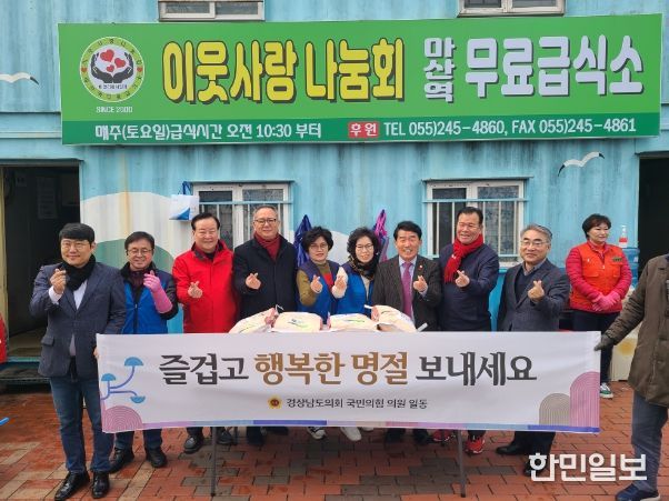 한민일보 서울포커스 임호근 기자 | 경남도의회 국민의힘 교섭단체(원내대표 진상락)가 설 명절을 앞둔 지난 3일 창원 마산역 광장을 방문해 사회취약계층에 위문품을 전달하고 식사 보조 등 봉사활동을 펼쳤다.