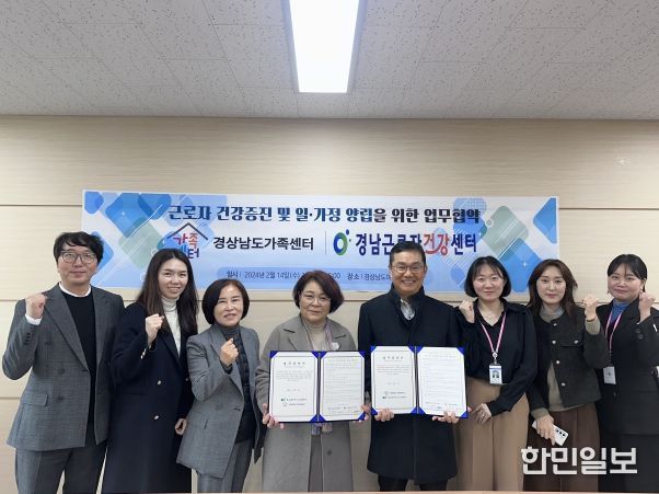한민일보 서울포커스 임호근 기자 | 경상남도가족센터는 지난 14일 근로자들의 건강문제를 해결하며 일·가정 양립을 도모하기 위해 경남근로자건강센터와 업무협약을 체결했다고 밝혔다.