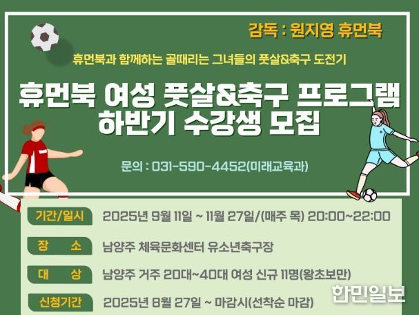 남양주시, 하반기‘휴먼북 여성 풋살&축구 강좌’운영… 선착순 모집 시작