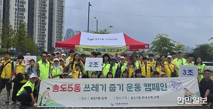 한민일보 서울포커스 백진욱 기자 | 연수구 송도5동 주민자치회(회장 채한진)는 지난 6일 지역 주민들과 함께 쾌적하고 살기 좋은 마을 조성을 위한 환경정화 캠페인 ‘쓰담쓰담 송도5동 줍깅’을 실시했다.