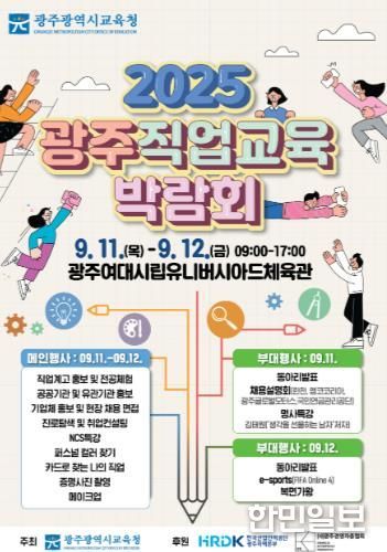 한민일보 서울포커스 박용남 기자 | 광주시교육청은 오는 11~12일 광주여자대학교시립유니버시아드체육관에서 중·고등학생 5천여 명이 참여한 가운데 ‘2025 광주 직업교육박람회’를 개최한다.