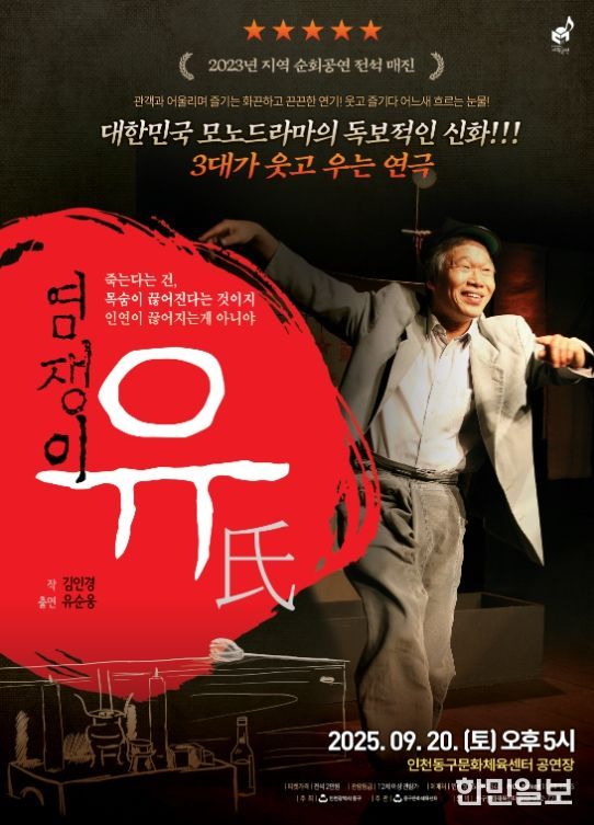한민일보 서울포커스 백진욱 기자 | 인천 동구문화체육센터는 오는 20일 오후 5시 관객과 함께 걸어온 모노드라마, 연극 '염쟁이 유씨'를 무대에 올린다고 밝혔다.