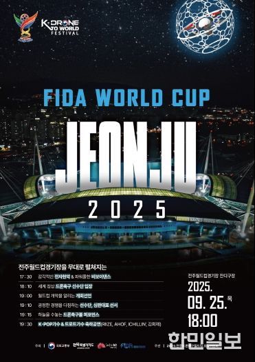 한민일보 서울포커스 최성훈 기자 | 전주시가 오는 25일 개막하는 ‘2025 전주드론축구월드컵(FIDA World Cup Jeonju 2025)’에 참가하는 전세계 드론축구선수단의 안전하고 편안한 체류를 위한 준비를 완료했다.
