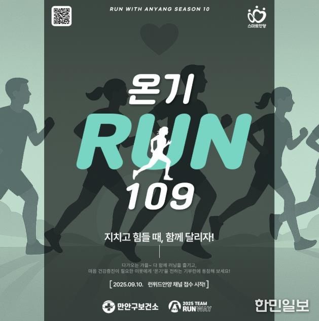 한민일보 서울포커스 김성윤 기자 | 안양시는 건강달리기와 마음건강 캠페인 활동을 결합한 ‘런위드안양 시즌10 [온기-RUN 109]’프로젝트 참가자를 ‘세계자살예방의 날’인 10일부터 오는 19일까지 접수한다.