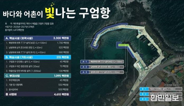 한민일보 서울포커스 김다남 기자 | 제주시는 총사업비 84억 6천만 원이 투입되는 귀덕2리·하도리 마을단위 특화개발사업(38억 5천만 원)과 구엄항 어촌신활력증진사업(46억 1천만 원)을 본격 추진한다.