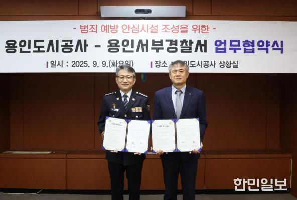 한민일보 서울포커스 김성윤 기자 | 용인도시공사는 9일 용인서부경찰서와 범죄예방 안심시설 조성을 위한 상호협력 업무협약을 체결했다고 밝혔다.
