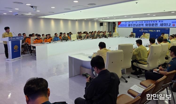 한민일보 서울포커스 박용남 기자 | 광주광역시는 전라남도, 31보병사단, 광주경찰청, 전남경찰청과 공동주관으로 10일 오전 시청 충무시설에서 ‘2025 화랑훈련 세미나’를 개최했다.