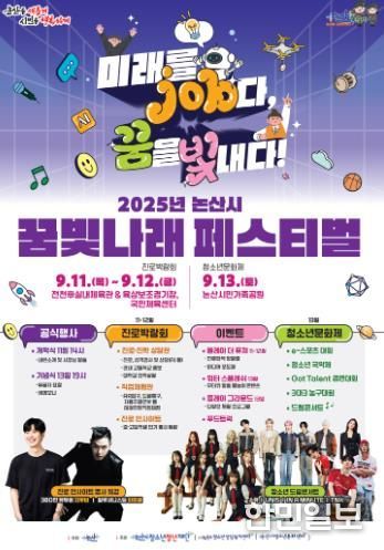 한민일보 서울포커스 유돈상 기자 | 논산시는 11일부터 13일까지 3일간, 청소년의 성장과 발전을 지원하고 진로 탐색과 문화 교류의 장을 마련하기 위한 ‘2025 논산시 청소년 꿈빛나래 페스티벌’을 개최한다.