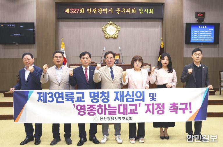 한민일보 서울포커스 백진욱 기자 | 중구의회는 9월 11일, 지난 ‘인천광역시 지명위원회’에서 제3연륙교 명칭을 ‘청라하늘대교’로 의결한 것과 관련하여 제3연륙교 명칭을 재심의하고 ‘영종하늘대교’로 지정할 것을 강력히 촉구하는 결의문을 발표했다.