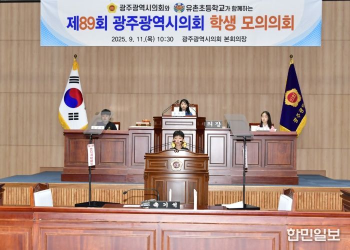 한민일보 서울포커스 박용남 기자 | 광주광역시의회는 9월 11일 오전 10시 30분 시의회 본회의장에서 유촌초등학교 학생들을 대상으로 ‘제89회 광주광역시의회 학생 모의의회’를 개최했다.