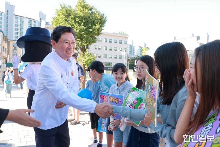 한민일보 서울포커스 김성윤 기자 | 이상일 용인특례시장이 11일 기흥구 마북동에 있는 구성초등학교에서 학교폭력 예방 캠페인을 벌였다.