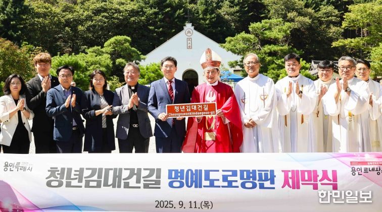 한민일보 서울포커스 김성윤 기자 | 용인특례시는 11일 양지면 은이성지 입구에서 ‘청년김대건길’ 명예도로명판 제막식을 열었다.