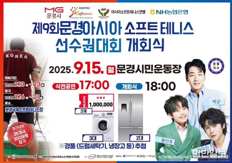 한민일보 서울포커스 최성훈 기자 | 아시아소프트테니스연맹이 주최하고 제9회 문경아시아소프트테니스선수권대회 조직위원회가 주관하는‘제9회 문경아시아소프트테니스선수대회’가 9월 13일부터 23일까지 문경국제소프트테니스장 일원에서 11일간의 열전에 돌입한다.