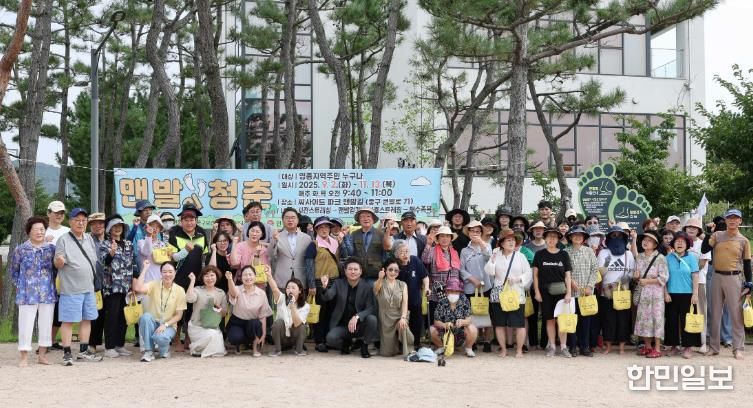 한민일보 서울포커스 백진욱 기자 | 김정헌 인천 중구청장이 지난 9일 영종 씨사이드파크 맨발길에서 열린 ‘2025년도 하반기 맨발의 청춘’ 걷기 프로그램 현장을 찾아 주민들과 함께 걸으며 소통하는 시간을 가졌다.