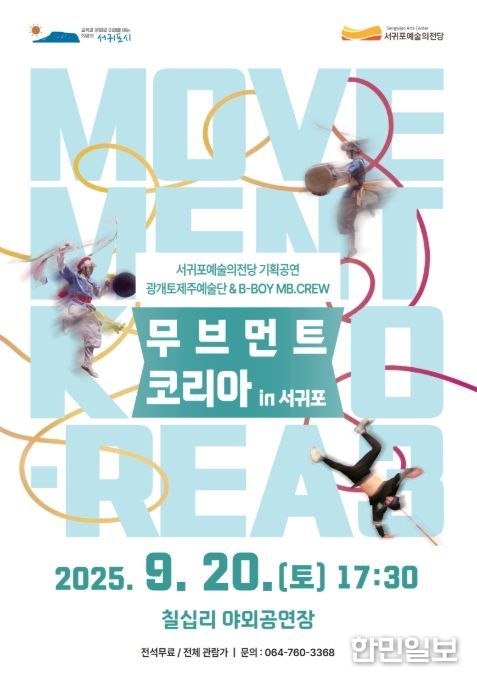 한민일보 서울포커스 김다남 기자 | 서귀포예술의전당은 2025년 9월 20일 오후 5시 30분, 칠십리야외공연장에서 기획공연 '무브먼트 코리아 in 서귀포'를 개최한다.