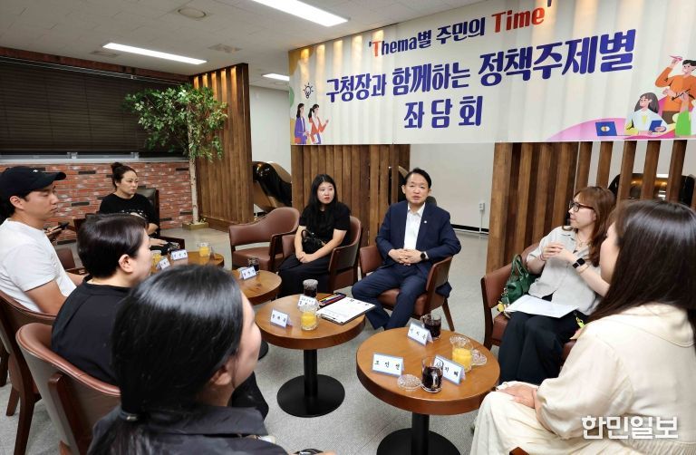 한민일보 서울포커스 백진욱 기자 | 김찬진 동구청장은 지난 11일 구청 물치도관에서 주민들과 함께하는 ‘Thema별 주민의 Time’ 좌담회를 개최했다. 주민들은 지난달 신청서를 내고 좌담회 참여를 희망한 참여자들이다.