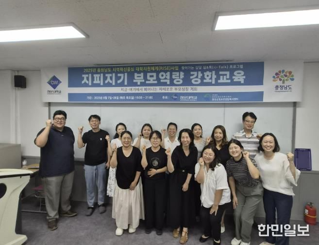 한민일보 서울포커스 유돈상 기자 | 홍성군청소년상담복지센터는 청운대학교 사회서비스대학 청소년상담교육학과와 협력하여 지난달 7일부터 27일까지 매주 목요일에 청운대학교 인의관에서 4회기로 진행하는 부모역량강화교육 ‘지피지기’ 프로그램을 성공적으로 마무리했다고 밝혔다.