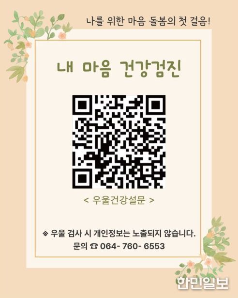 한민일보 서울포커스 김다남 기자 | 서귀포시는 2025년 3월부터 시민들이 언제 어디서나 손쉽게 자신의 정신건강 상태를 확인할 수 있도록 '비대면 QR코드 활용 정신건강 자가 검진'을 운영하고 있다.