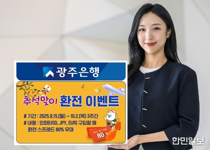 한민일보 서울포커스 임철현 기자 | 광주은행은 15일, 추석 명절을 맞아 외국통화 환전 시(외국통화 사실 때) 최대 80% 환율 우대를 제공하는 ‘추석맞이 환전 이벤트’를 실시한다고 밝혔다.
