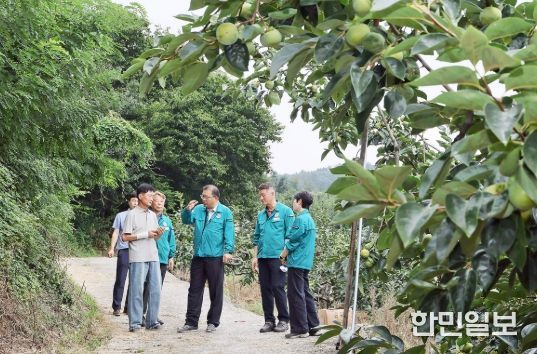 장금용 권한대행은 먼저 북면 단감 재배 농가를 방문해 일소 피해 및 병해충 동향, 예상 생산량 등을 종합적으로 살펴보고 농업인들의 애로사항을 청취했다.