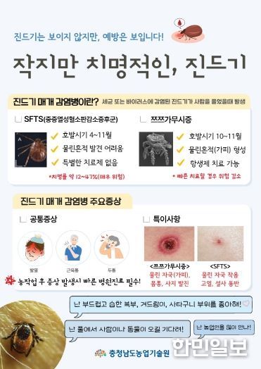 한민일보 서울포커스 진광성 기자 | 충남도 농업기술원은 가을철을 맞아 진드기 매개 감염병 예방수칙을 철저히 준수해 줄 것을 안내했다.