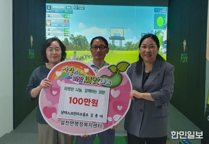 한민일보 서울포커스 김서윤 기자 | 설천면 행정복지센터는 최근 남해읍 심천리에 남해파크골프스크린을 개장한 김종대 대표가 고향인 설천면에 성금 100만 원을 기탁했다고 밝혔다.