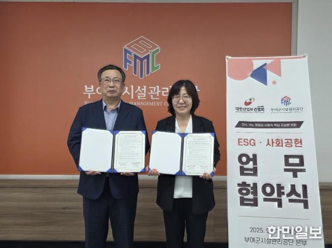 한민일보 서울포커스 유돈상 기자 | 부여군시설관리공단은 대한산업보건협회와 ESG 경영 및 사회공헌 활동 강화를 위한 업무협약(MOU)을 체결했다고 16일 밝혔다.
