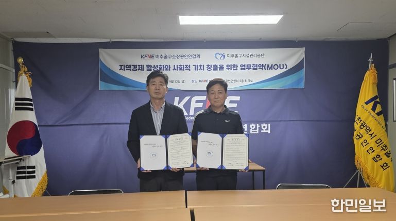 한민일보 서울포커스 백진욱 기자 | 인천 미추홀구시설관리공단(이사장 박종구)은 미추홀구소상공인연합회와 ‘지역경제 활성화를 위한 업무협약’을 체결했다고 16일 밝혔다.