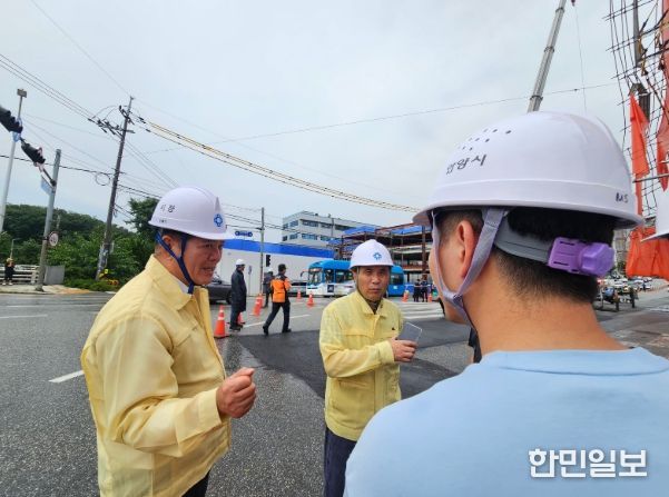 한민일보 서울포커스 김성윤 기자 | 최대호 안양시장이 16일 발생한 비계 전도사고 현장에 방문해 신속한 사고 수습과 안전조치를 지시했다.