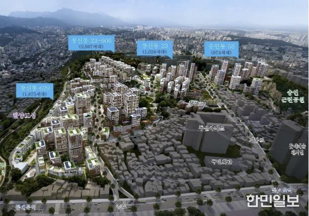 2024년 11월 신속통합기획이 확정된 창신동 23-606번지(143,148.7㎡)와 629번지(92,190.8㎡) 일대에는 지상 최고 29층, 4,542세대 규모의 주택단지가 들어선다. 원지형에 순응한 테라스형 단지, 한양도성 경관과 어우러지는 스카이라인, 낙산-동대문 보행축 연계 등 도시경관과 생활환경을 모두 고려해 세심하게 설계된다.