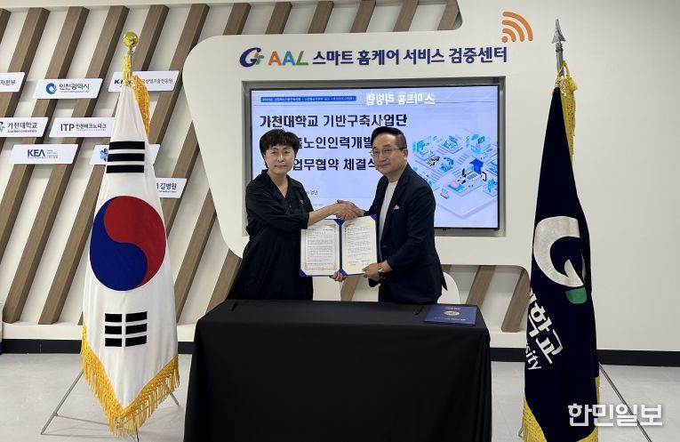 한민일보 서울포커스 백진욱 기자 | 인천 미추홀노인인력개발센터(센터장 김태화)는 지난 16일 가천대학교 기반구축사업단(단장 이은석)과 ‘취약계층 친화적 지능형 홈케어 서비스 개발 및 실용화 기반 구축과 노인 일자리 창출’을 위한 업무협약을 체결했다.