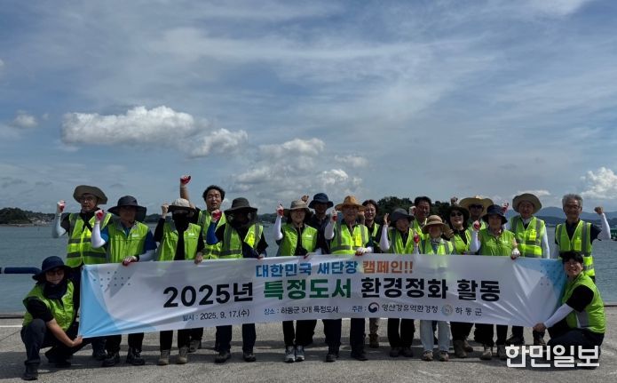 한민일보 서울포커스 진광성 기자 | 영산강유역환경청은 ‘대한민국 새단장 캠페인’의 일환으로17일 오전 하동군 특정도서 5개소(채도, 악도, 혈도, 토도, 소첨도)에서 민·관 합동 해양 쓰레기 수거 정화활동을 실시했다고 밝혔다.