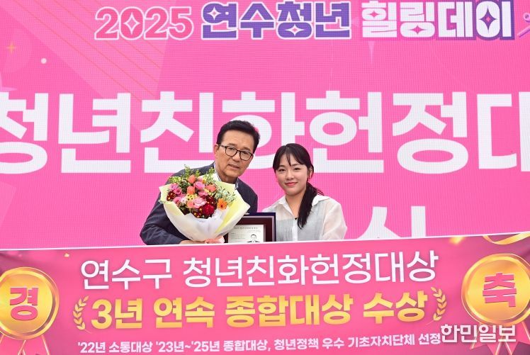한민일보 서울포커스 백진욱 기자 | 연수구가 국회사무처 소관 사단법인 ‘청년과 미래’가 주관한 2025년 제8회 ‘청년친화헌정대상’에서 3년 연속 ‘종합대상’을 수상하는 쾌거를 올렸다.