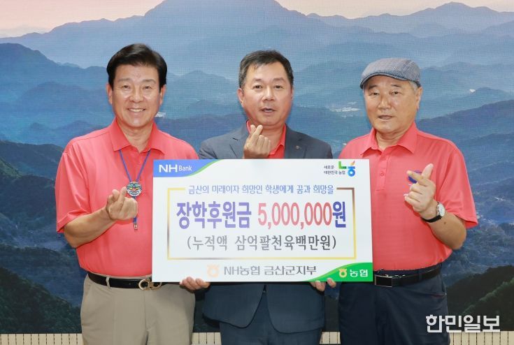 한민일보 서울포커스 유돈상 기자 | NH농협은행 금산군지부(지부장 박철우)는 지난 17일 금산군청에서 금산교육사랑장학재단(이사장 조신영)에 장학금 500만 원을 기탁했다.