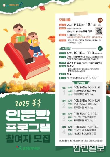 문인 북구청장은 “이번 프로그램이 문학을 읽고 사유하며 인문학의 소중한 가치를 체감하는 계기가 되기를 바란다”며 “앞으로도 문화 향유 기회 확대를 위해 체감도 높은 정책을 펼쳐 나가겠다”고 말했다.