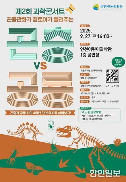 한민일보 서울포커스 유창렬 기자 | 인천시설공단 인천어린이과학관은 오는 27일 오후 2시에 곤충학자이자 만화가인 갈로아(김도윤) 작가를 초청해 '제2회 과학콘서트'를 개최한다.