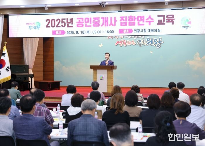 한민일보 서울포커스 전희주 기자 | 의왕시는 9월 18일 시청 대회의실에서 관내 공인중개사 120명이 참석한 가운데 ‘2025년 공인중개사 집합 연수 교육’을 개최했다.