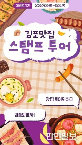 한민일보 서울포커스 유한희 기자 | 김포시는 지역 맛집을 알리고 지역경제 활성화를 위해 오는 9월 22일부터 10월 24일까지 약 한 달간 ‘2025 김포맛집 스탬프투어 이벤트’를 운영한다고 밝혔다.