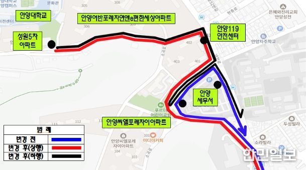 한민일보 서울포커스 김성윤 기자 | 안양시가 오는 21일 첫차부터 마을버스 10-2번 노선의 종점을 안양5동의 성원5차아파트까지 연장한다고 18일 밝혔다.