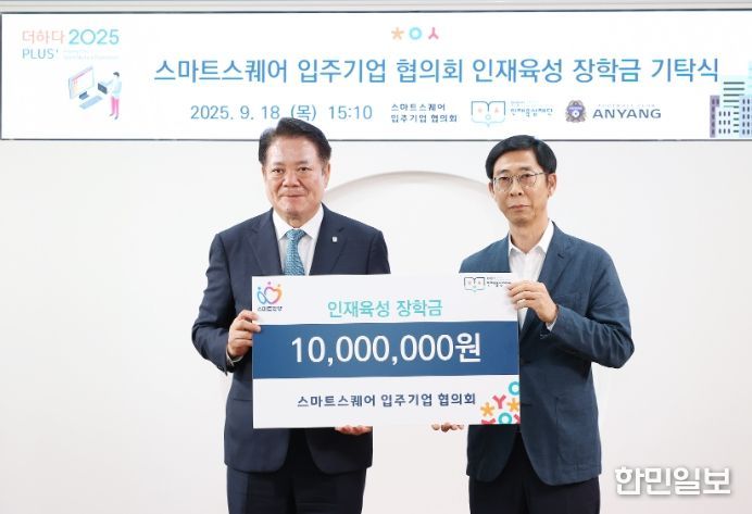 한민일보 서울포커스 김성윤 기자 | 안양시 인재육성재단은 18일 스마트 스퀘어 입주기업 협의회로부터 1천만 원의 인재육성 장학금을 기탁받았다고 19일 밝혔다.
